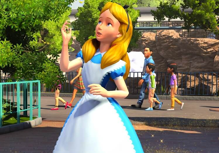 We return to Disneyland Adventures to visit the characters from Alice in Wonderland. As with Emoji Blitz, many of the iconic characters are present and wait for players around the Fantasyland area. The Mad Hatter stands outside the Tea Cup ride and Alice herself stands outside the Alice in Wonderland dark ride.